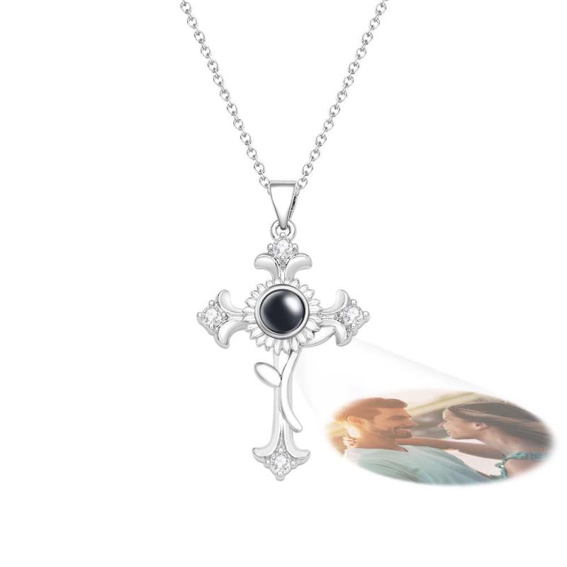 Collier De Projection De Photo Personnalisé, Croix De Tournesol, Cadeau Créatif