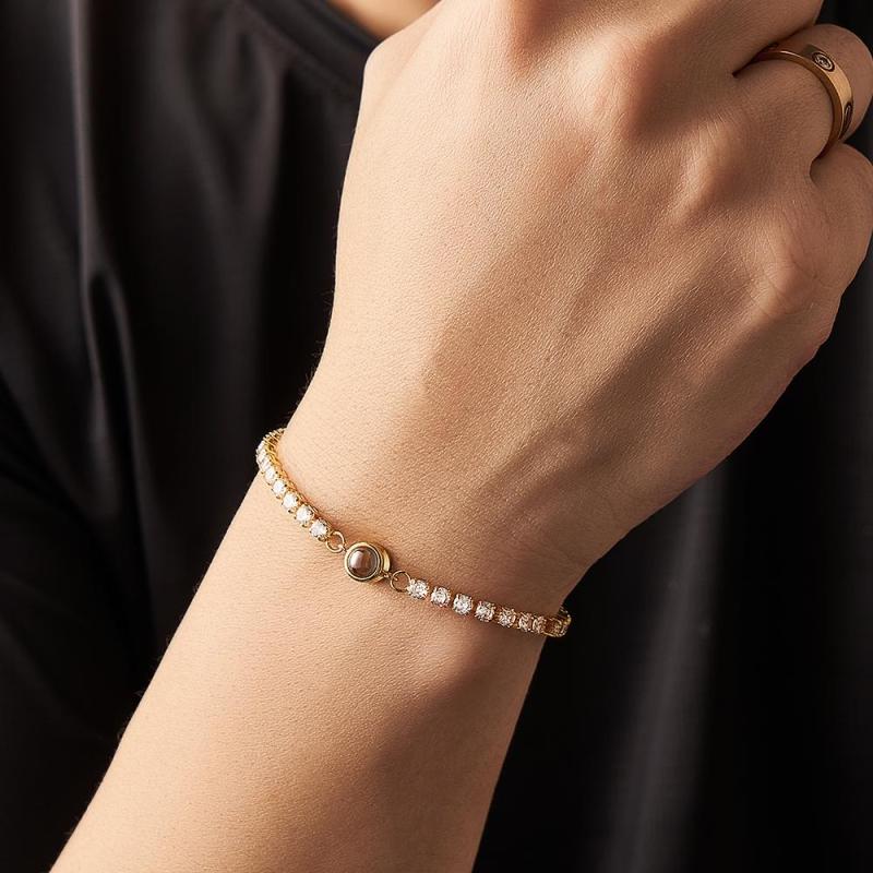 Bracelet De Tennis À Projection De Photos Personnalisé, Bracelet Photo En Cercle Tendance, Cadeaux Pour Lui