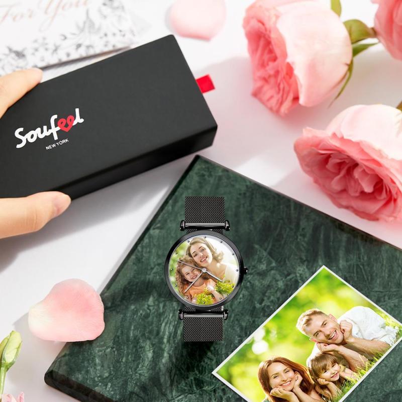 Montre Photo Personnalisée Montre Gravée Bracelet En Alliage Noir