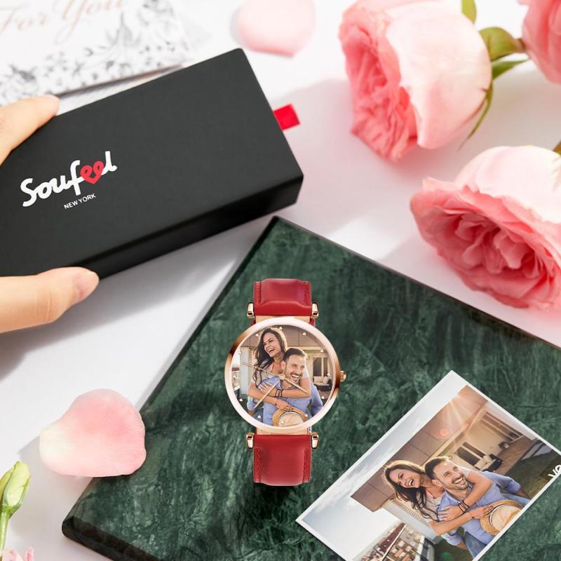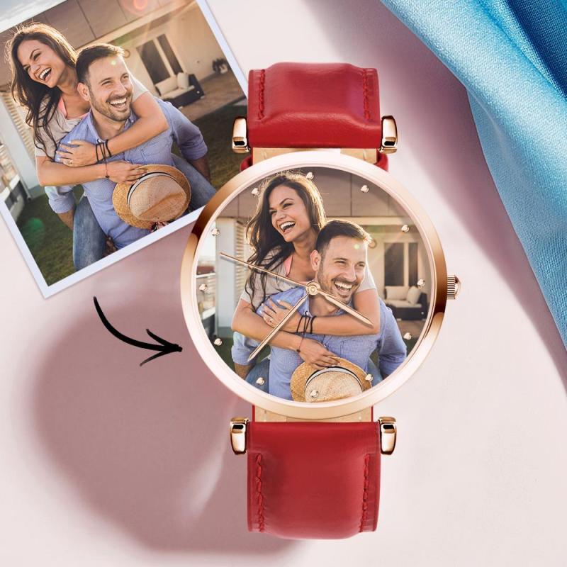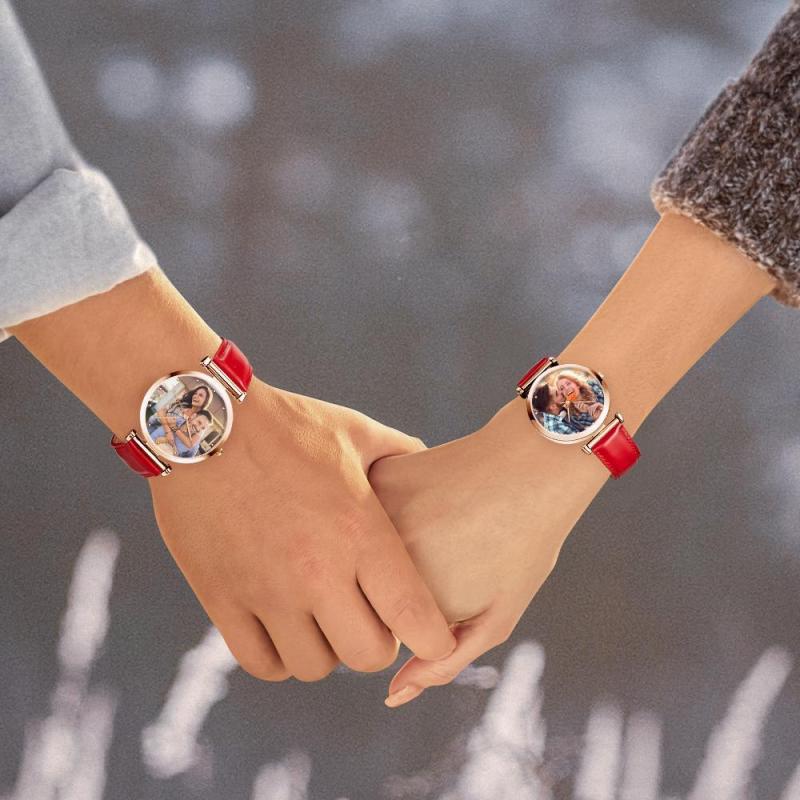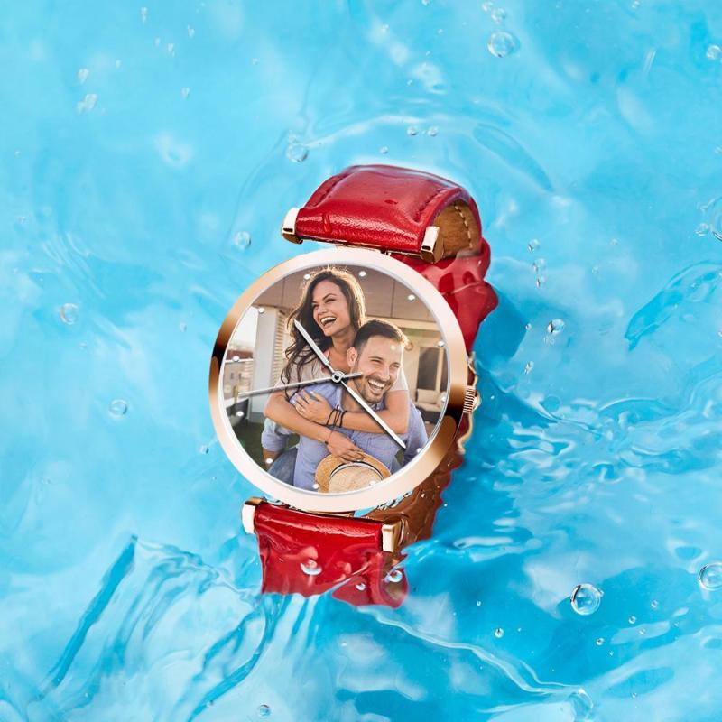 Bracelet rouge de montre gravé personnalisé de l'homme de montre de photo fait sur commande pour l'amant
