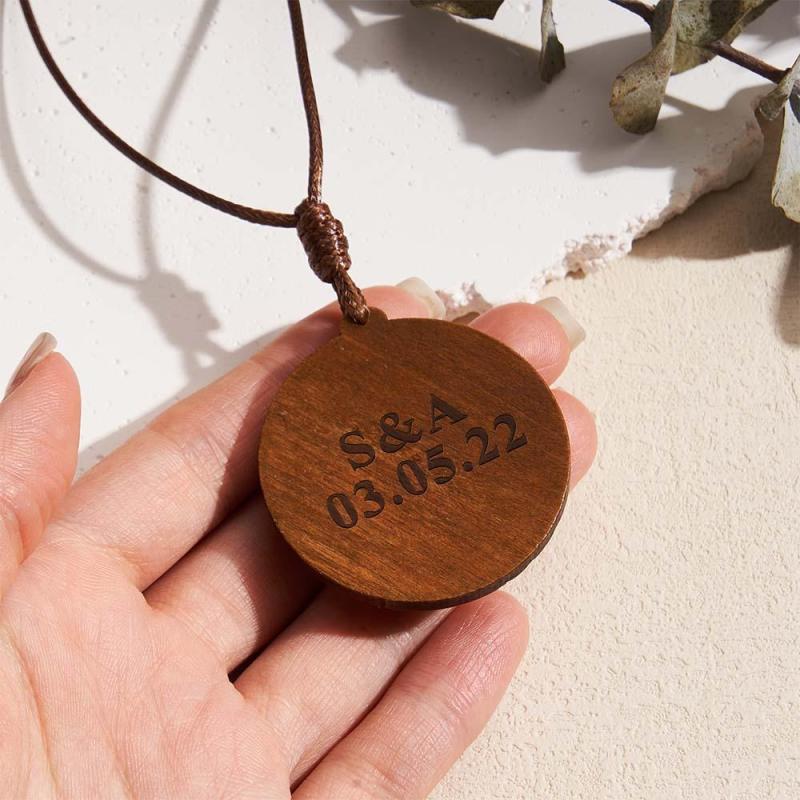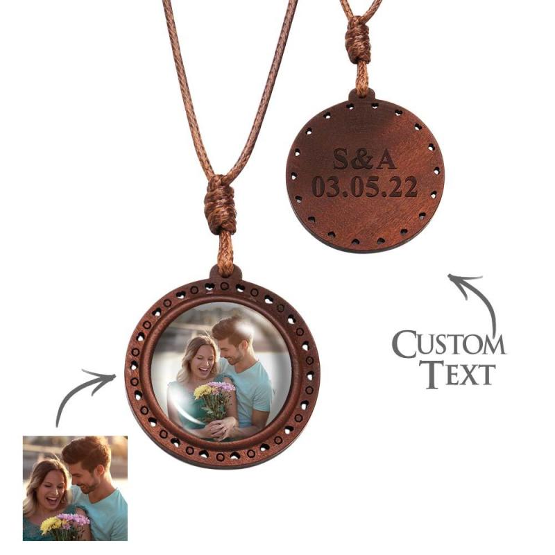 Collier Pendentif En Bois Avec Photo Personnalisée, Cadeaux De Saint-valentin Pour Elle, Collier Avec Nom Gravé Personnalisé