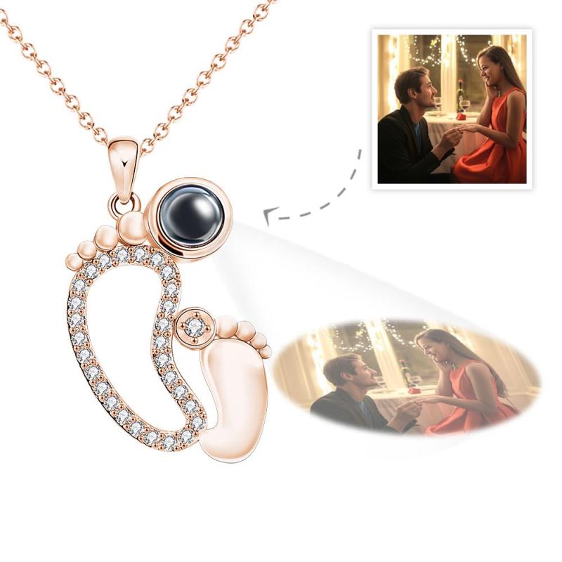 Collier De Projection Personnalisé Cadeaux De Couple De Diamant De Pieds Drôles