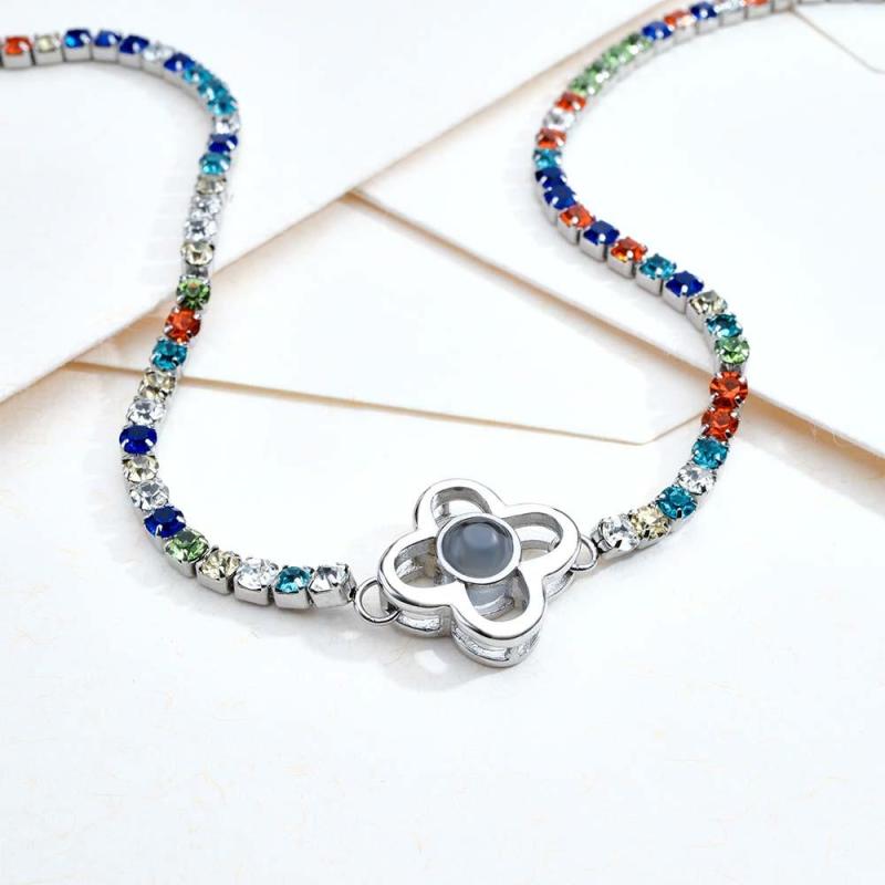 Collier De Projection Personnalisé Chaîne De Tennis Trèfle À Quatre Feuilles Cadeau Pour Elle