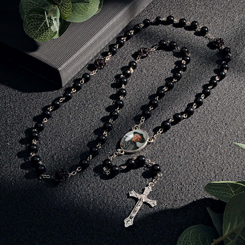 Chapelet Personnalisé En Perles, Collier Croisé, Collier De Perles D'imitation En Verre Personnalisé Avec Photo