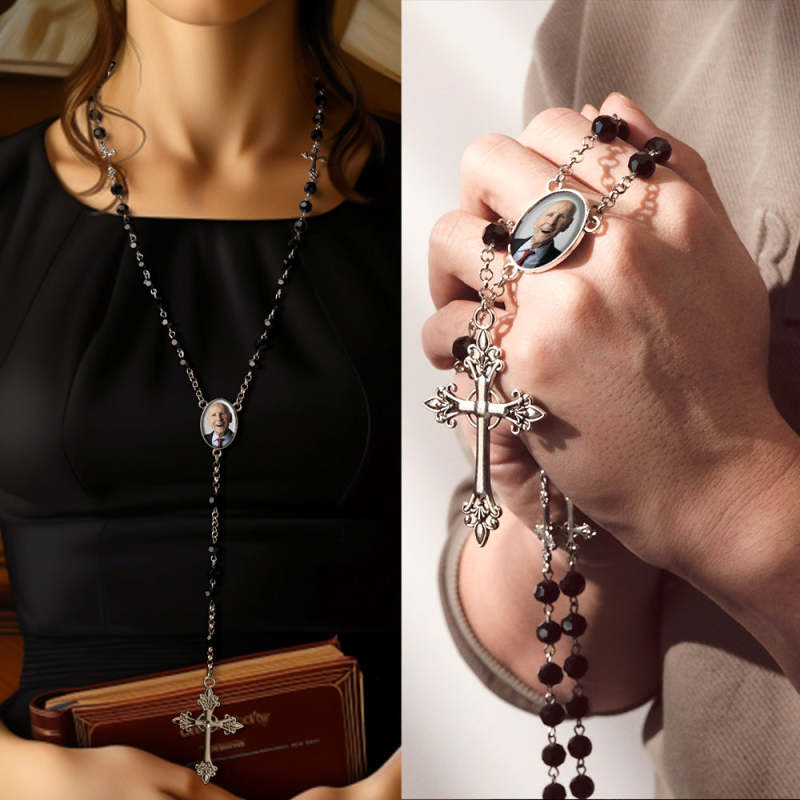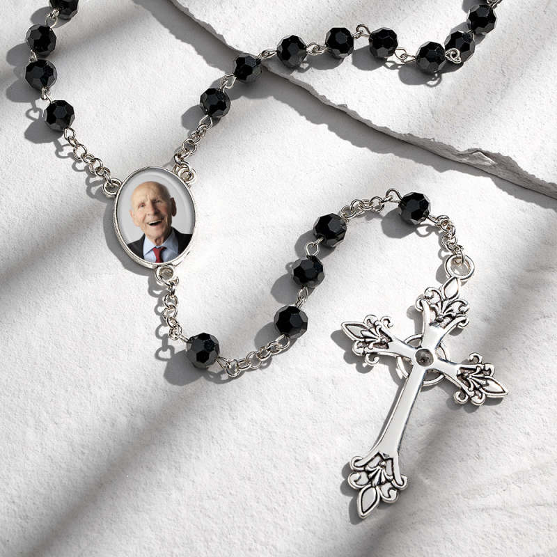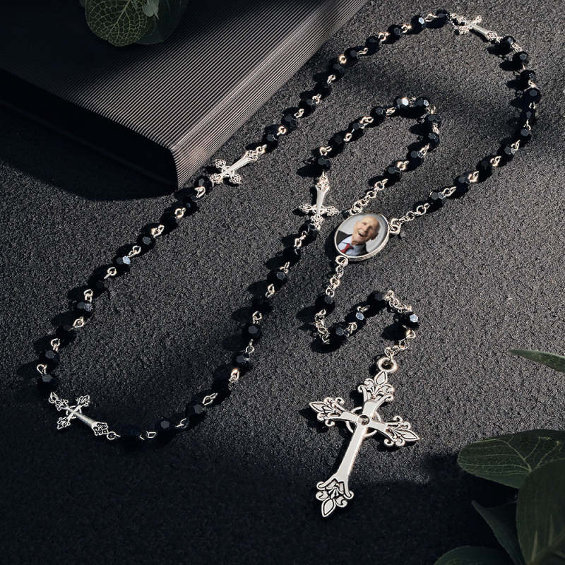 Collier De Perles Chapelet Personnalisé, Collier De Croix Gothique Personnalisé Avec Photo