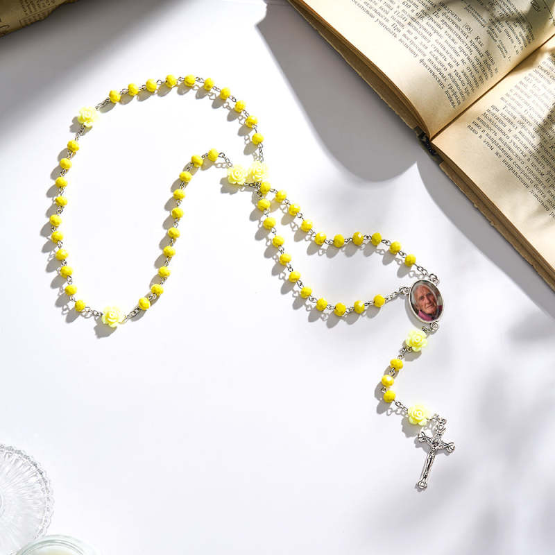 Collier Chapelet Personnalisé En Perles Et Croix, Collier En Cristal Multicolore De Style Hip-hop Avec Photo