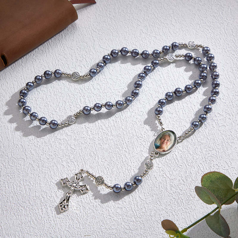 Chapelet Personnalisé En Perles D'imitation De Verre, Collier Croisé Personnalisé Rétro, Collier Creux Avec Photo
