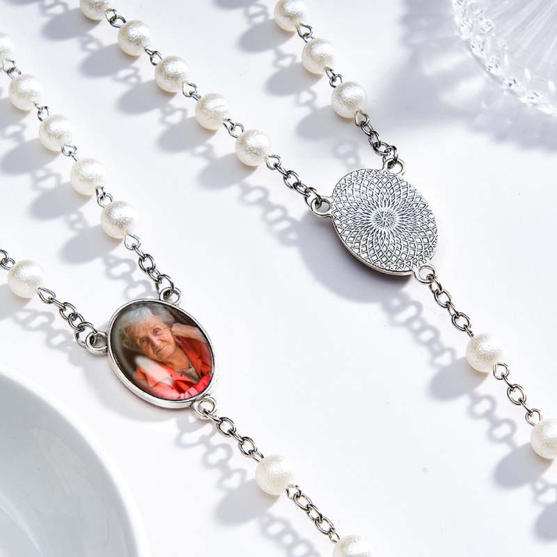 Collier Chapelet Personnalisé En Perles De Baie Blanche, Collier Personnalisé Avec Photo