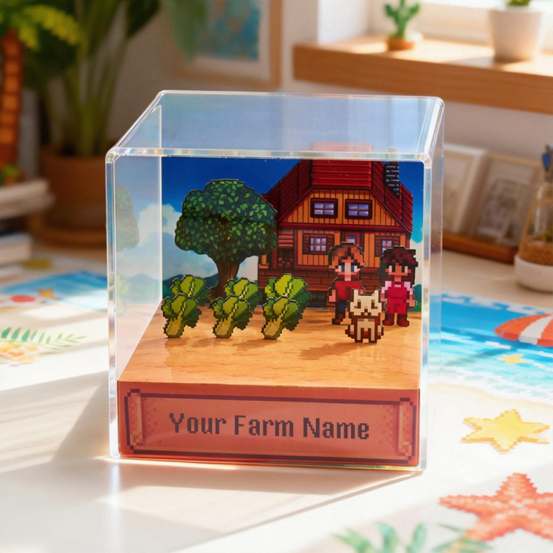 Cube Diorama 3d Sdv Personnalisé « la Vallée » (scène Pixel) - Cadeau Pour Gamers Et Décoration Intérieure