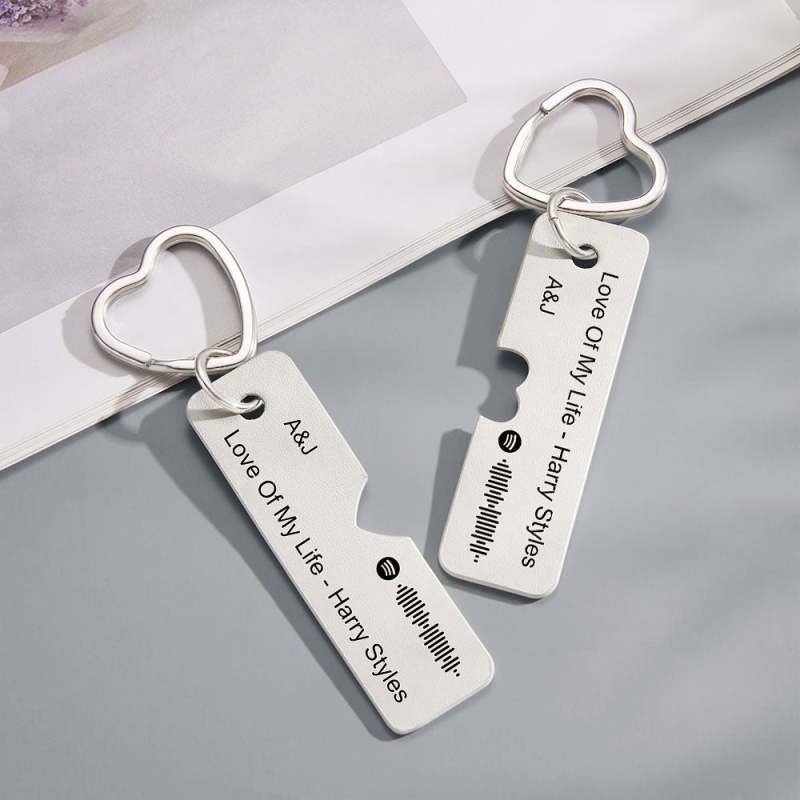 Porte-clés Personnalisé Spotify Code Personnalisé Gravé Paire de Porte-clés en Cuir Cadeau pour Elle