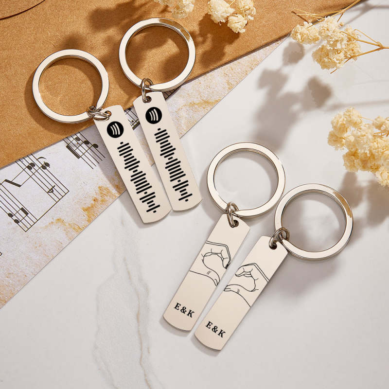Porte-clés Personnalisé Avec Deux Mains Et Un Cœur, Code Spotify Scannable, Chanson Musicale, Cadeau De Saint-valentin Pour Amoureux
