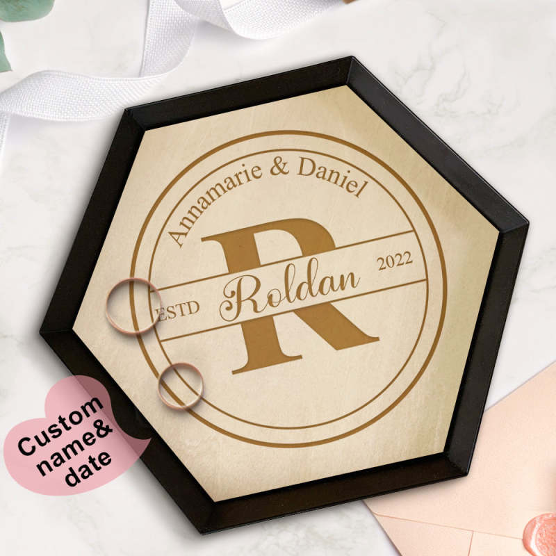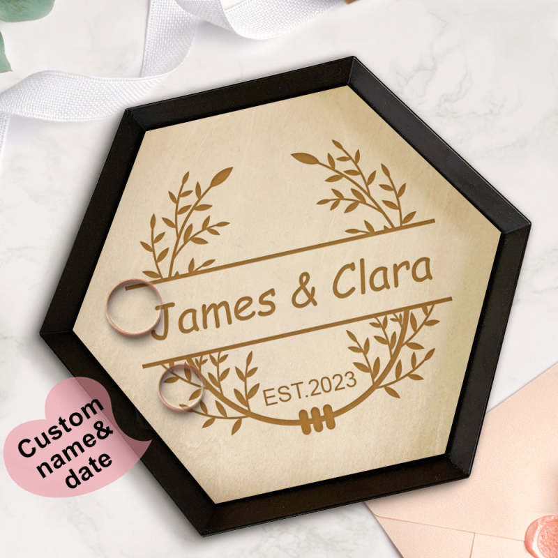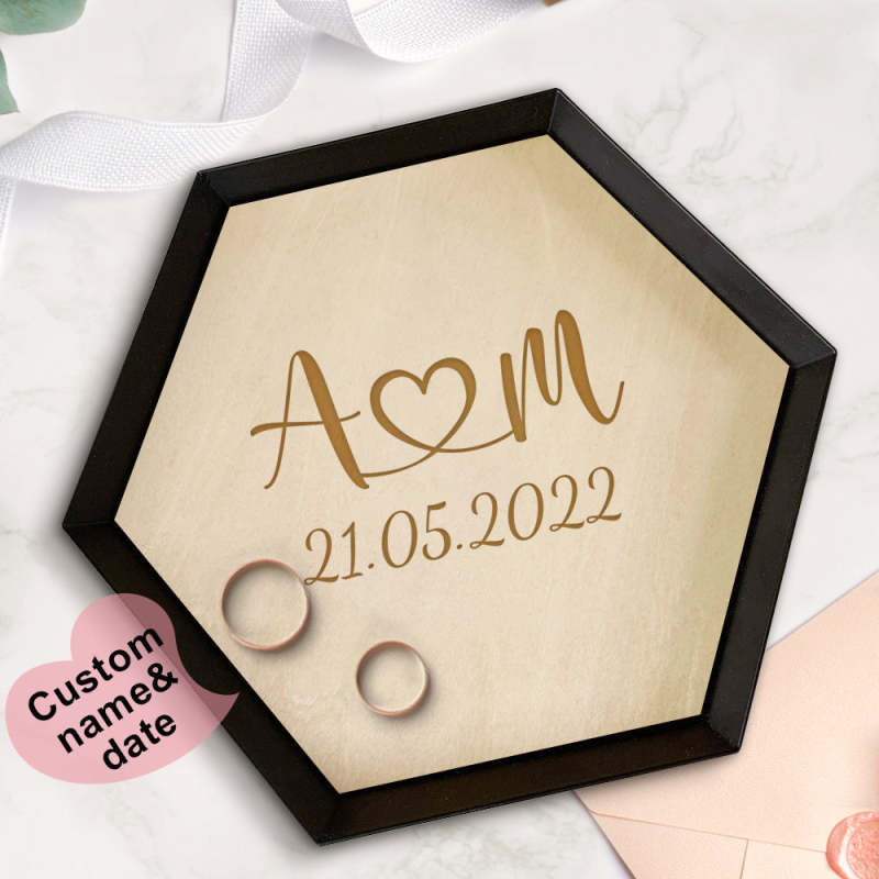 Plateau À Bijoux En Bois Personnalisé Bijoux De Fiançailles Porte-anneau Plat Décor À La Maison Cadeau