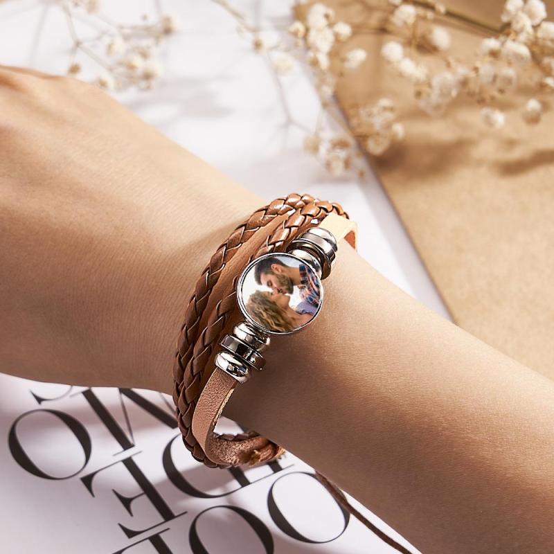 Bracelet En Cuir Personnalisé Bricolage Photo Impression Bouton Pression Sublimation Snap Bracelet À Breloques Pour Lui