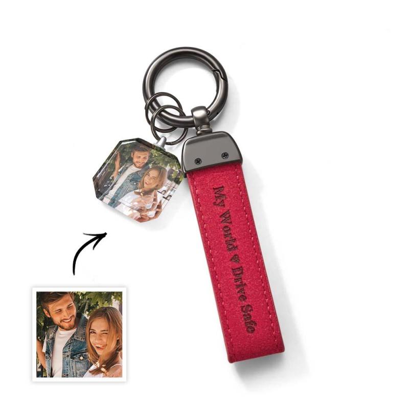 Drive Safe My Love Porte-clés Personnalisé En Cuir Gravé Au Laser Avec Photo En Cristal