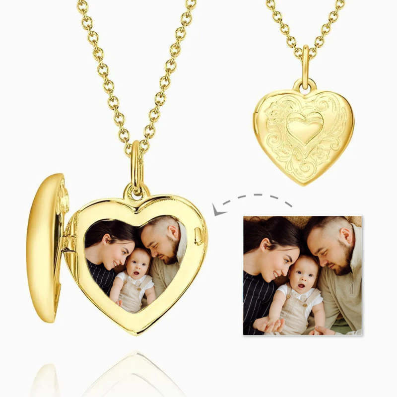 Collier Médaillon Photo En Forme De Cœur Avec Impression En Relief, Plaqué Or 14 Carats, Cadeau D'anniversaire Pour Elle