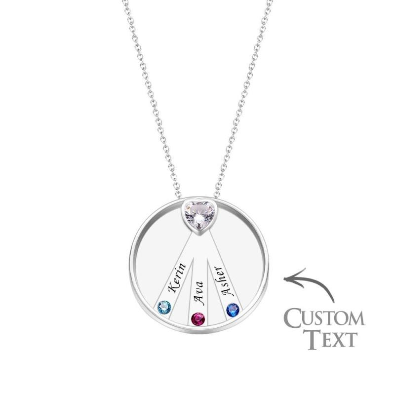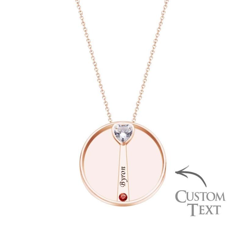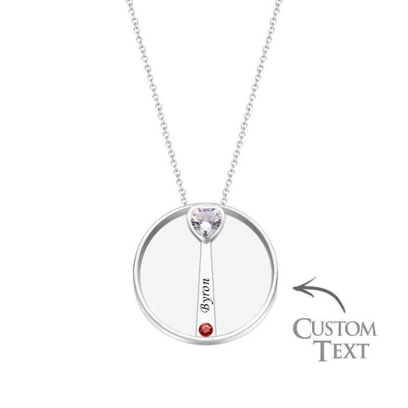 Collier Avec Pierre De Naissance Gravable, Charmant Pendentif Circulaire, Bijoux Cadeaux Pour Femmes