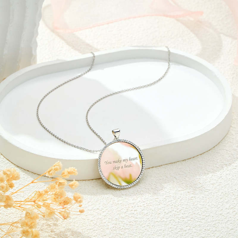 Collier Miroir Gravable, Pendentif Élégant En Ziron, Bijoux Cadeaux Pour Femmes