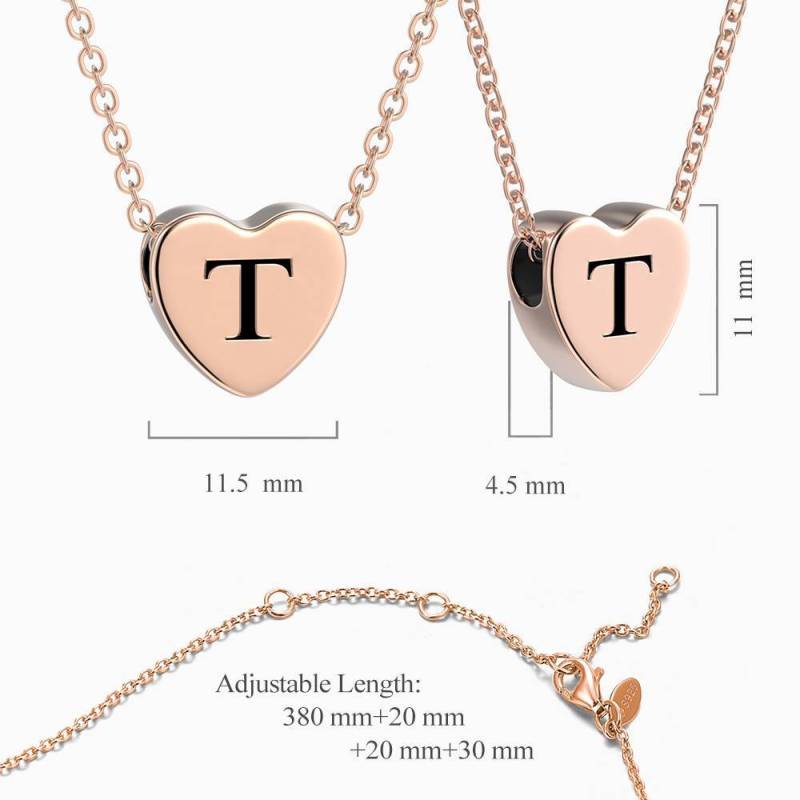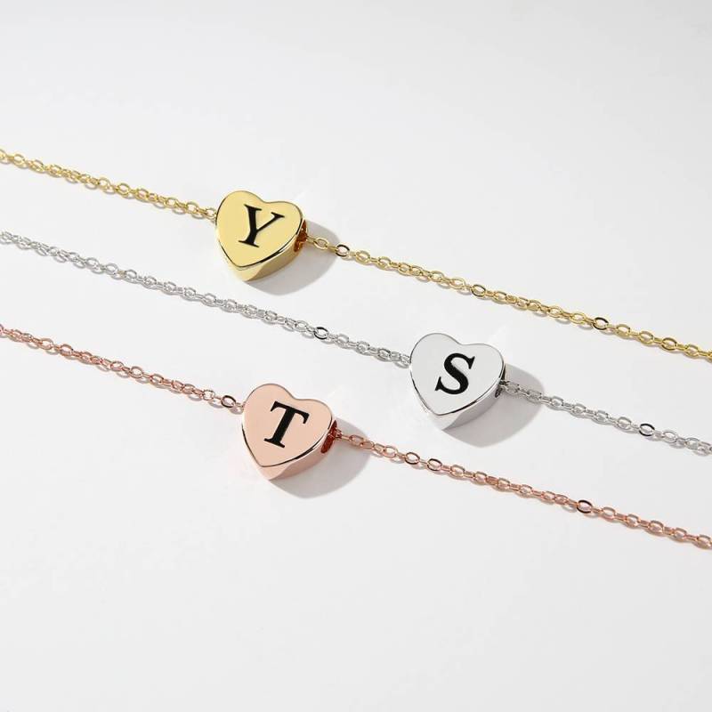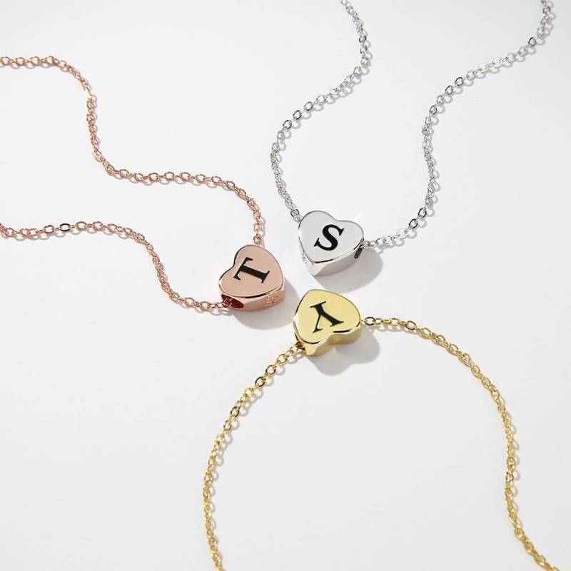 Collier Initial Coeur Gravé Plaqué Or Rose
