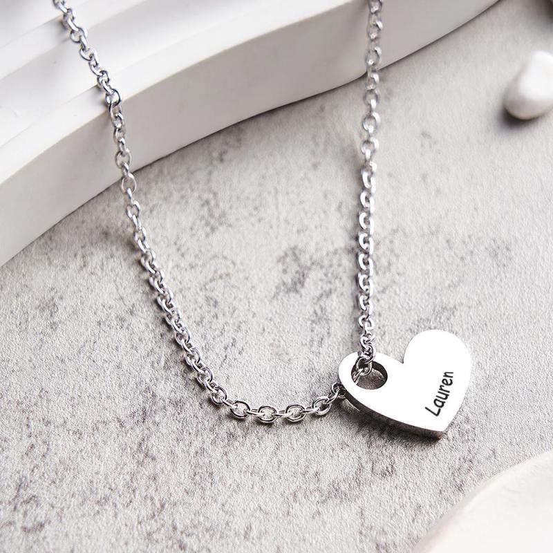 Collier De Lettre D'amour Gravé Collier En Forme De Coeur À La Mode Pour Elle