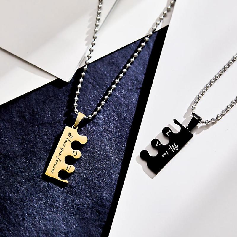 Gravé Amour Puzzle Couple Colliers Personnalisé Or Noir Colliers Cadeaux Saint Valentin