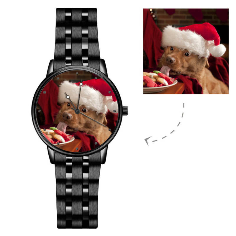 Montre Photo Gravable Pour Homme Bracelet D'Alliage Noir 38mm