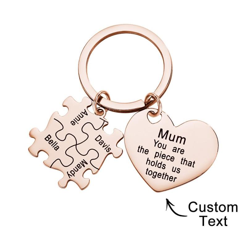 Puzzle Gravé Porte-clés En Forme De Coeur Porte-clés Personnalisé Cadeau De Fête Des Mères