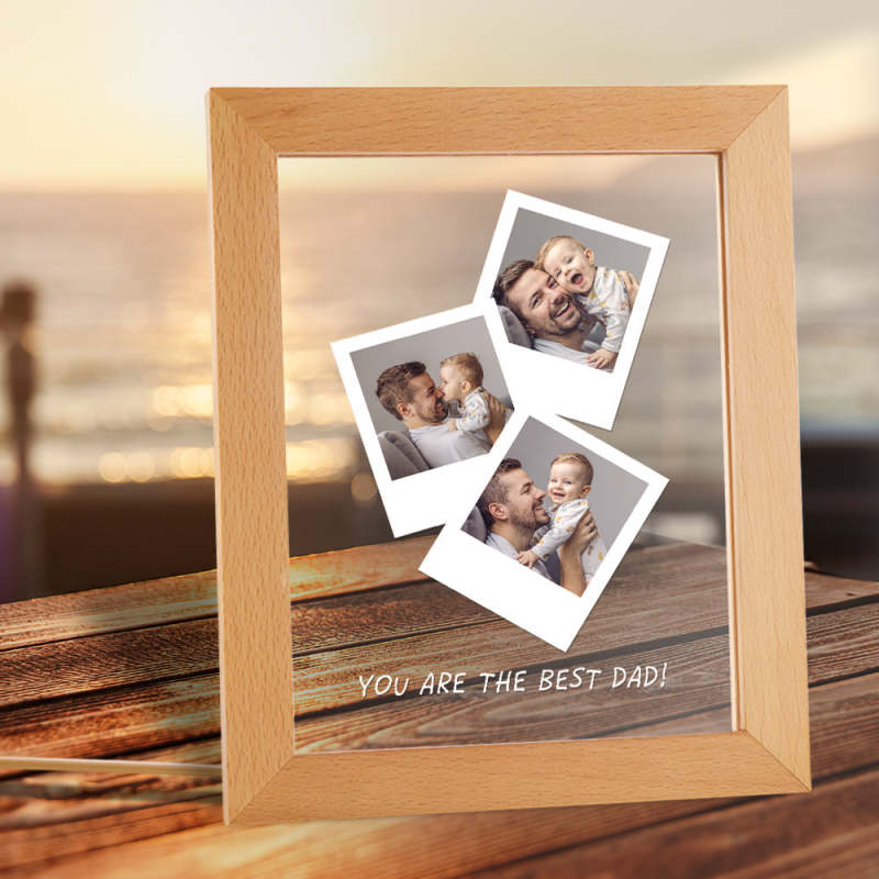 Cadeau de Fête des Pères Veilleuse de Base En Bois Avec Photo Personnalisée pour Papa