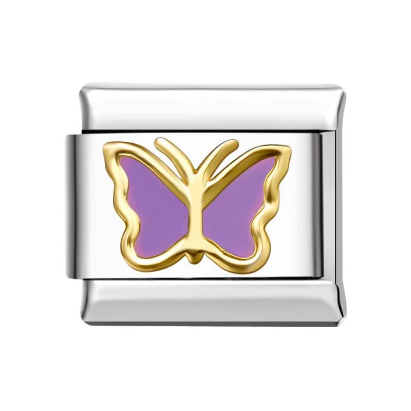 Papillon Bord Doré - Charm Italien Violet Pour Bracelets Charms Italiens Lien Composable
