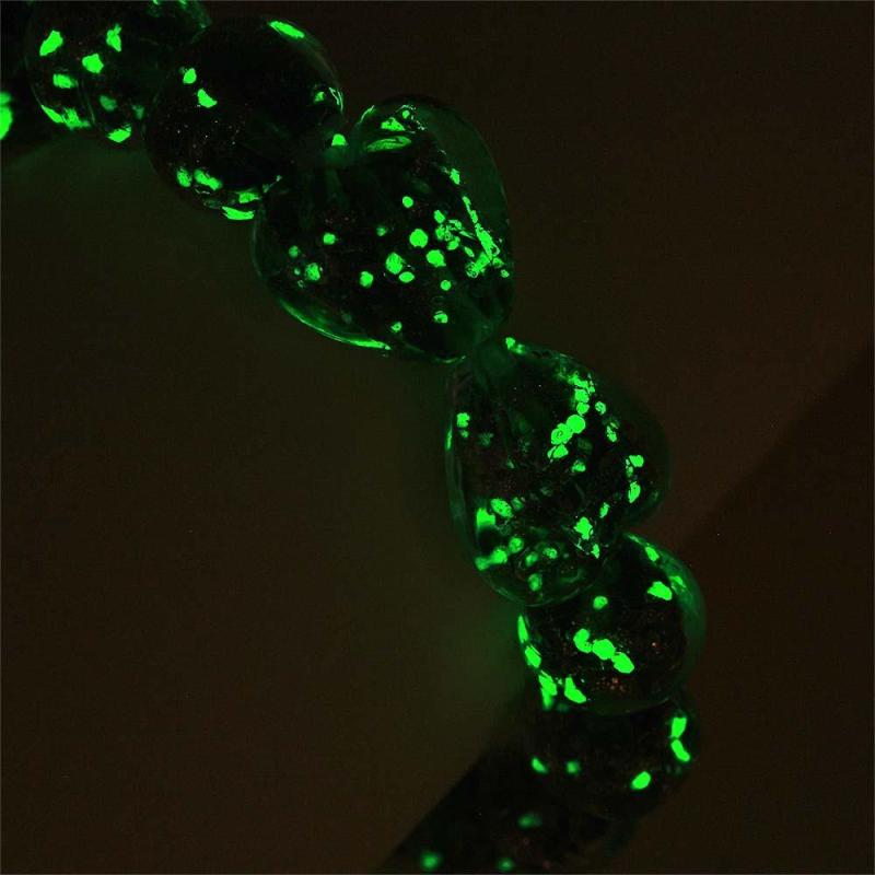 Bracelet De Perles Extensibles En Verre Luciole Cœur À Cœur Vert Herbe, Brille Dans Le Noir, Lumineux