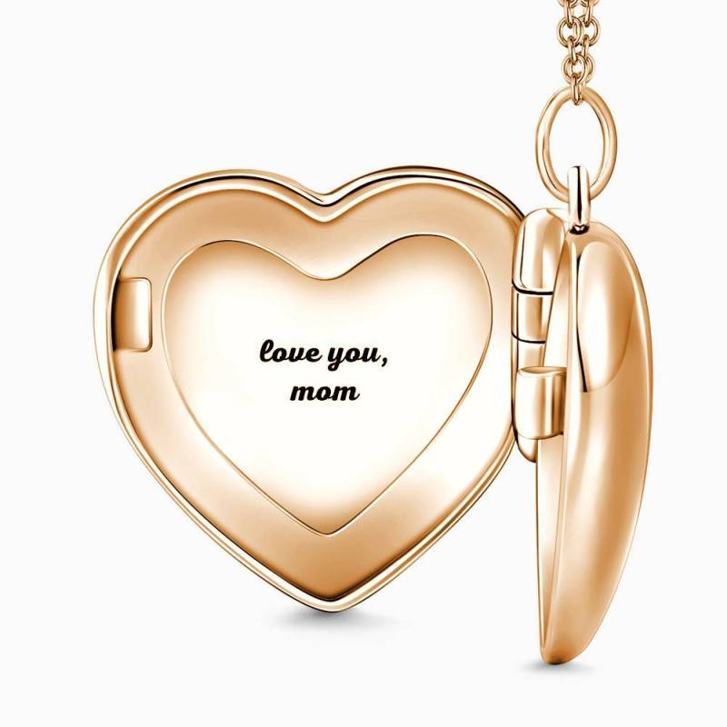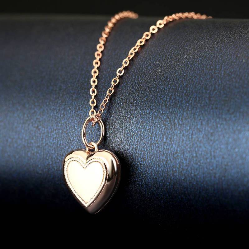 Collier Photo Médaillon Coeur Impression D'Amour à Graver Plaqué Or Rose