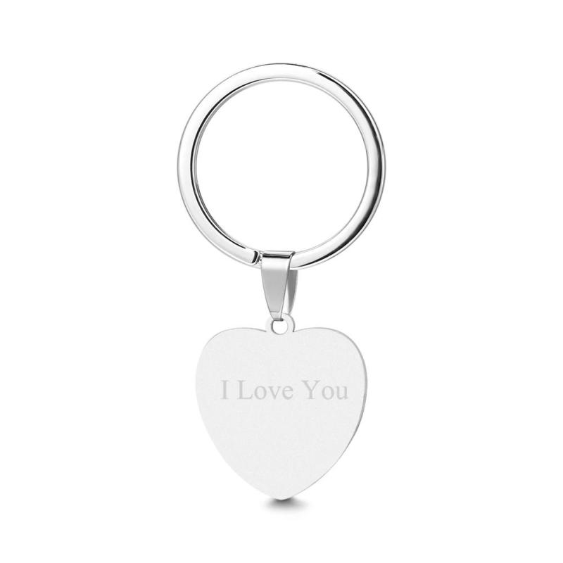 Porte-clés Photo en Forme de Coeur Avec Gravure en Acier Inoxydable