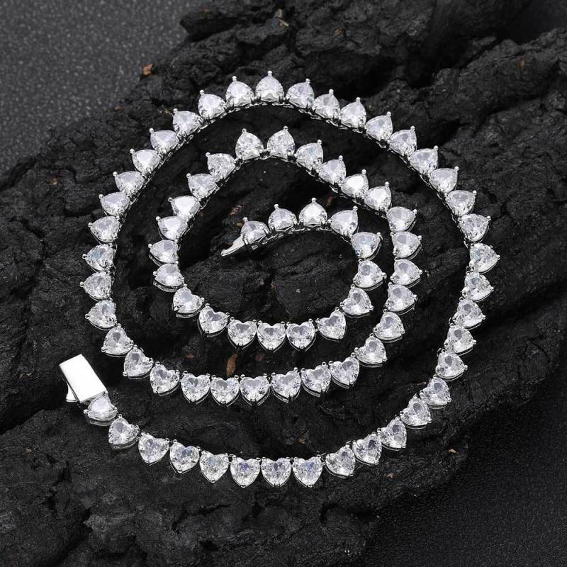 Collier Coeur Zircone Fermoir À Ressort Collier Tennis