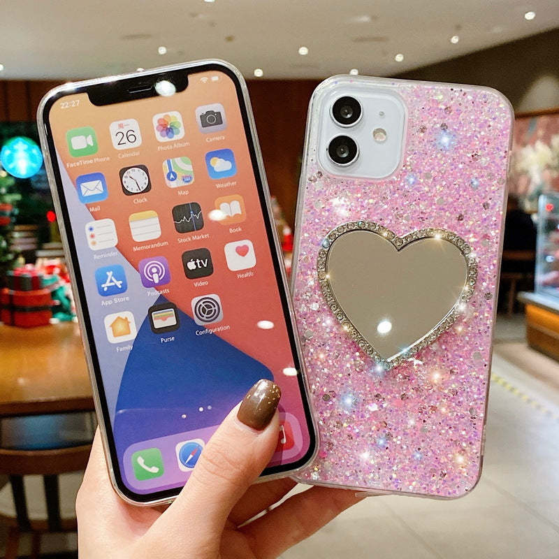 Poudre Scintillante Miroir D'amour Avec Cas de Téléphone Portable de Diamant Cadeau Pour Elle