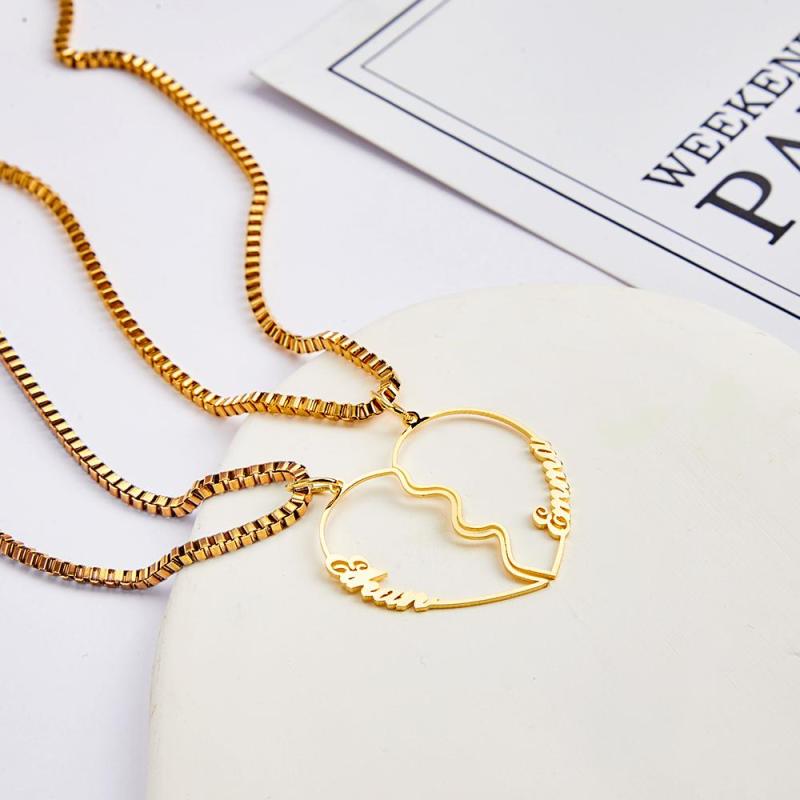 Collier De Nom Assorti Personnalisé Collier De Couple De Coeur D'amour Romantique