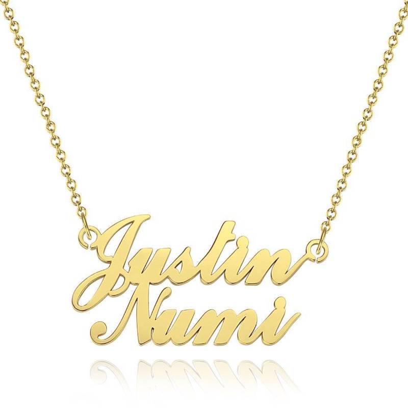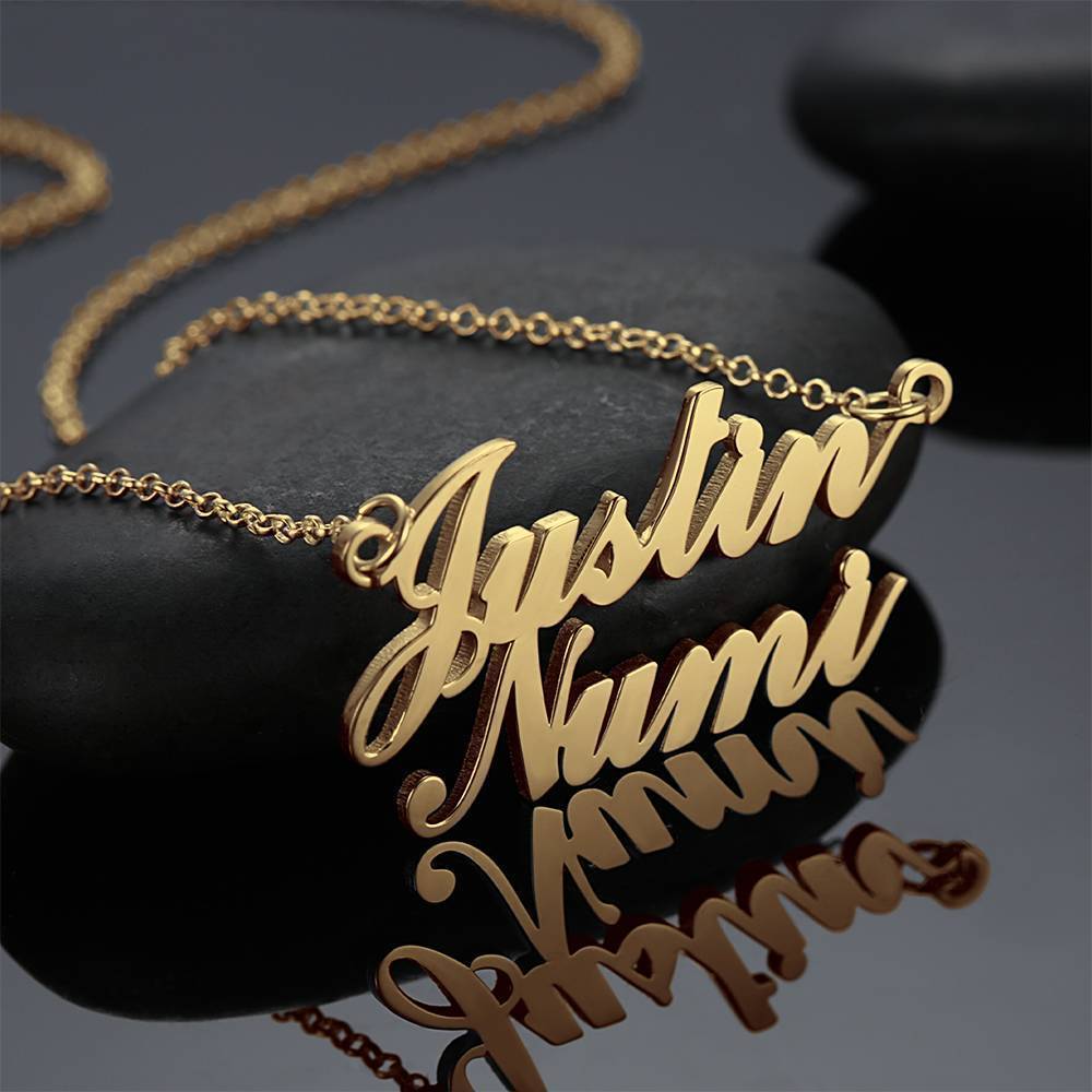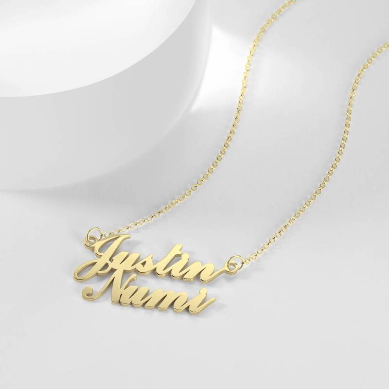 Collier Prénom Deux Noms Style Classique Plaqué en Or 14K - Argent