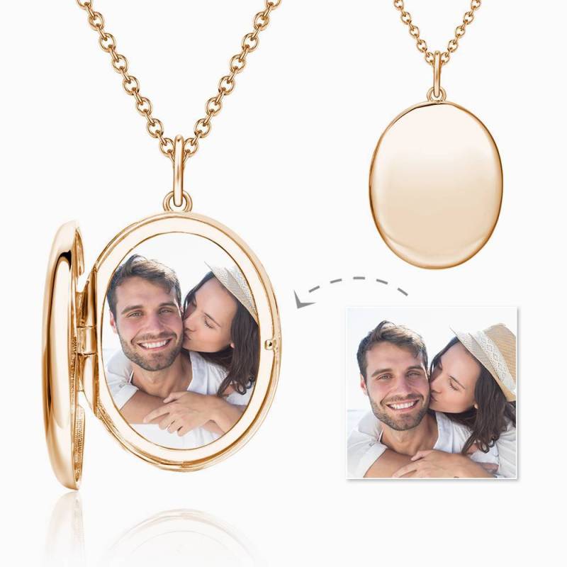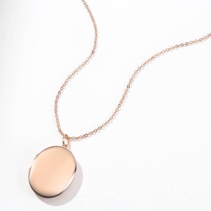 Collier Photo Médaillon Ovale à Graver Plaqué Or Rose