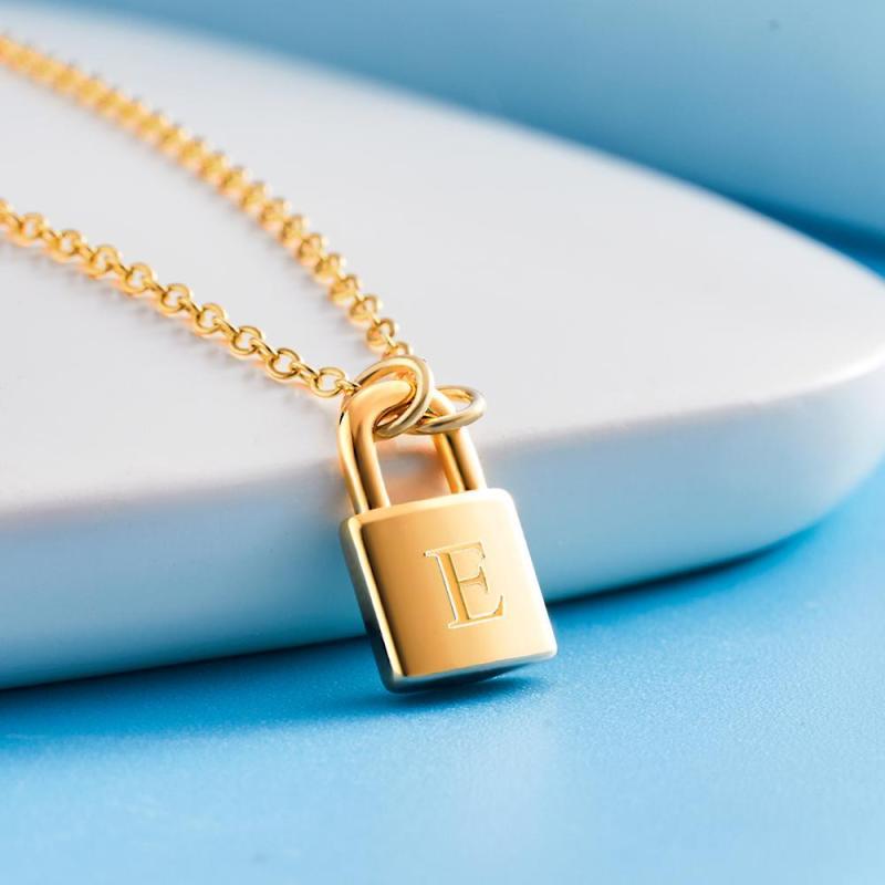 Lettre Initiale Cadenas Pendentif Collier Plaqué Or 14K Cadeau Créatif Pour Elle
