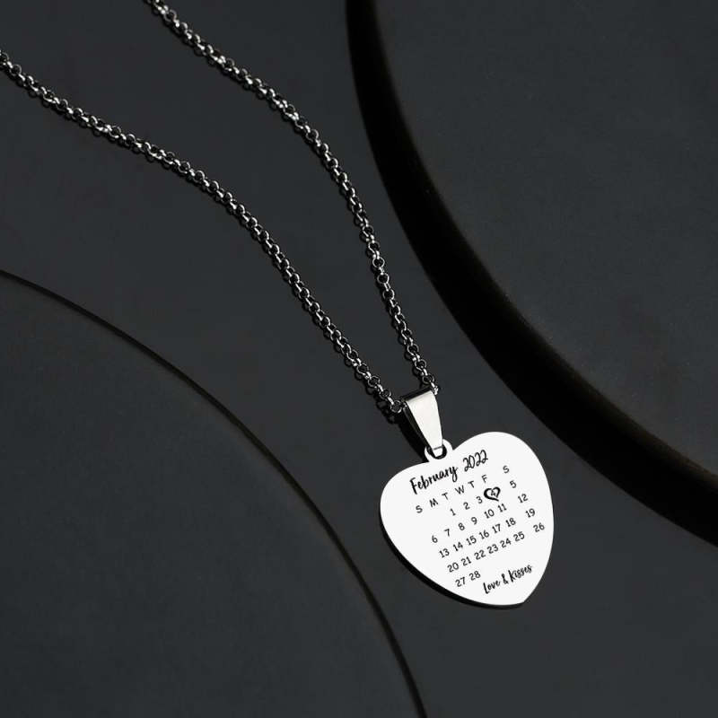 Collier Personnalisé En Acier Inoxydable Avec Date Spéciale Et Pendentif Photo Dog Tag Men's Calendar