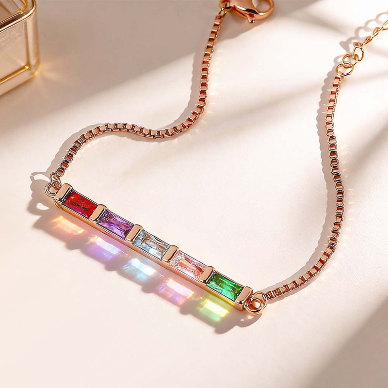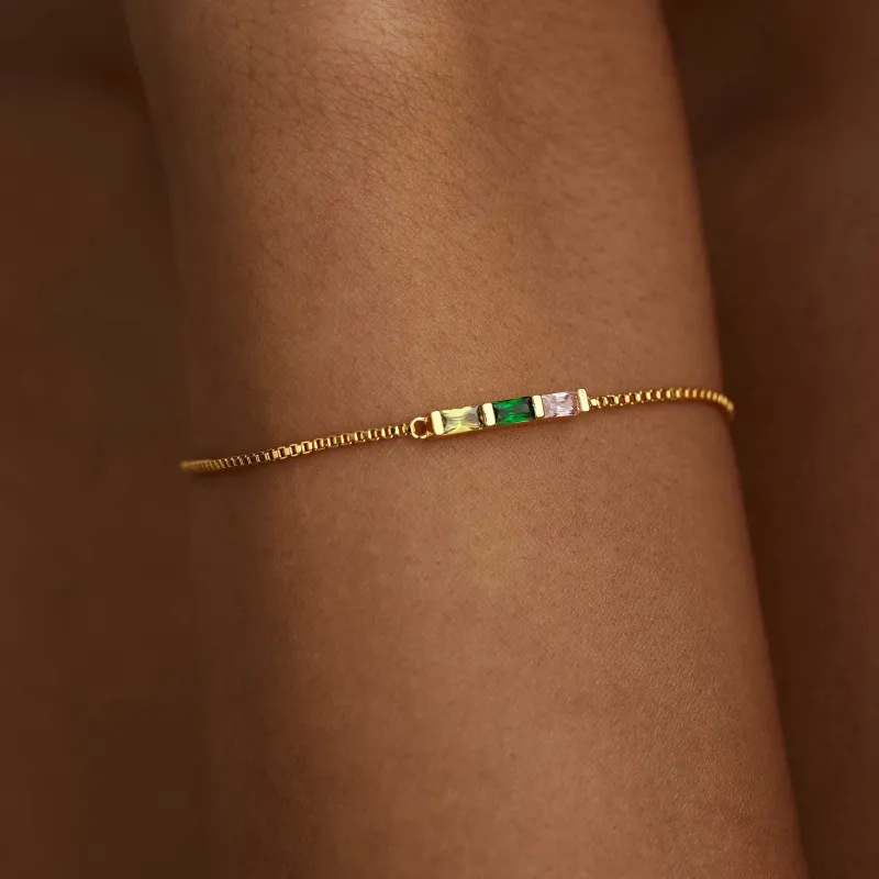 Bracelet Baguette Personnalisé Avec Pierre De Naissance - Bracelet Délicat Avec Pierre De Naissance Familiale - Bracelet Moderne Avec Pierre De Naissance - Cadeau De Noël Pour Elle