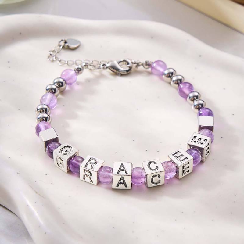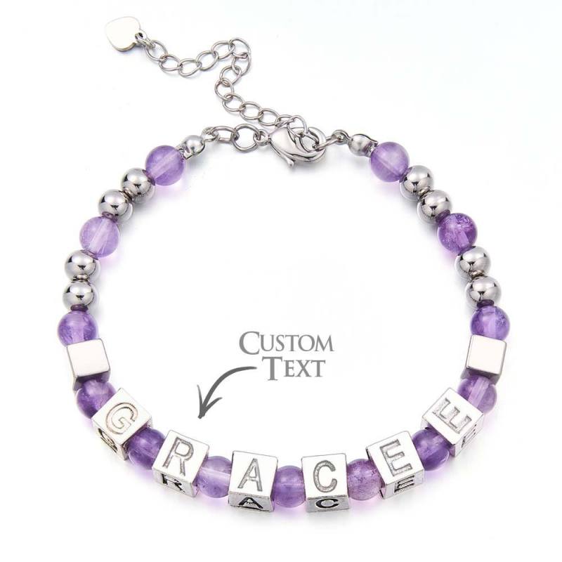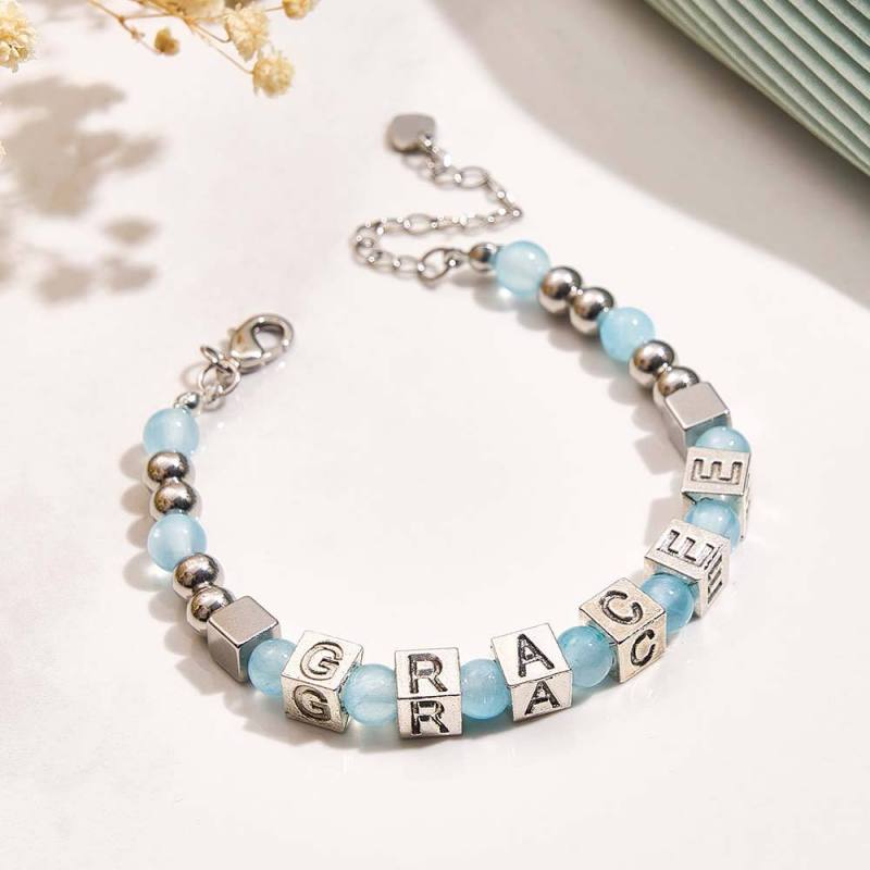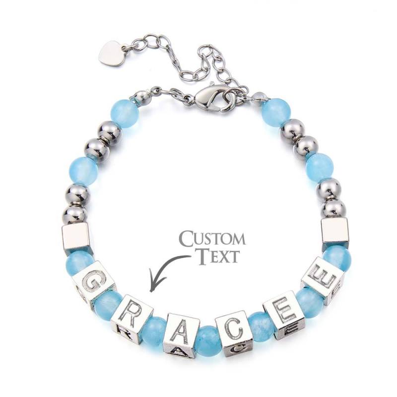 Bracelet Gravé En Perles Personnalisé Avec Pierres De Lune Blanches En Blanc Sterling