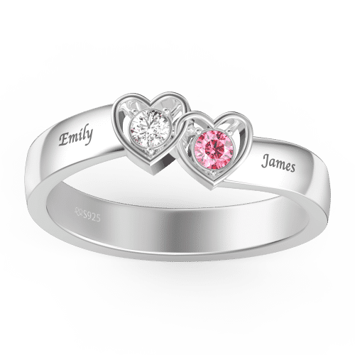 Bague De Promesse Pierre De Naissance Personnalisée Avec Gravure Argent Pour Elle
