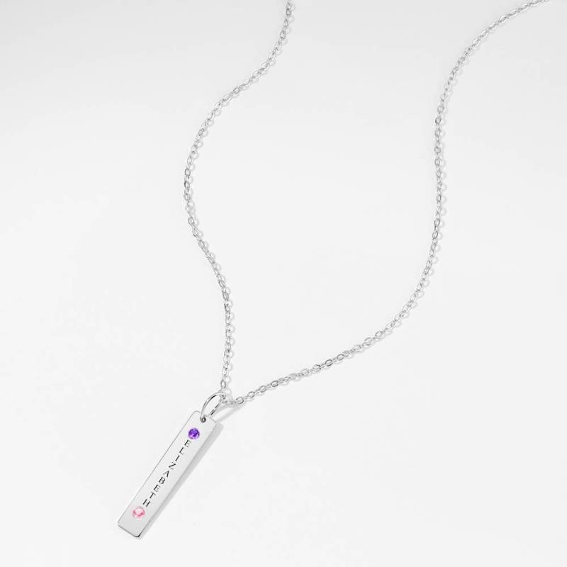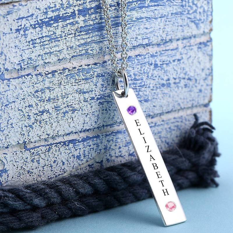 Collier Barre Verticale Pierre de Naissance Personnalisée Avec Gravure Argent