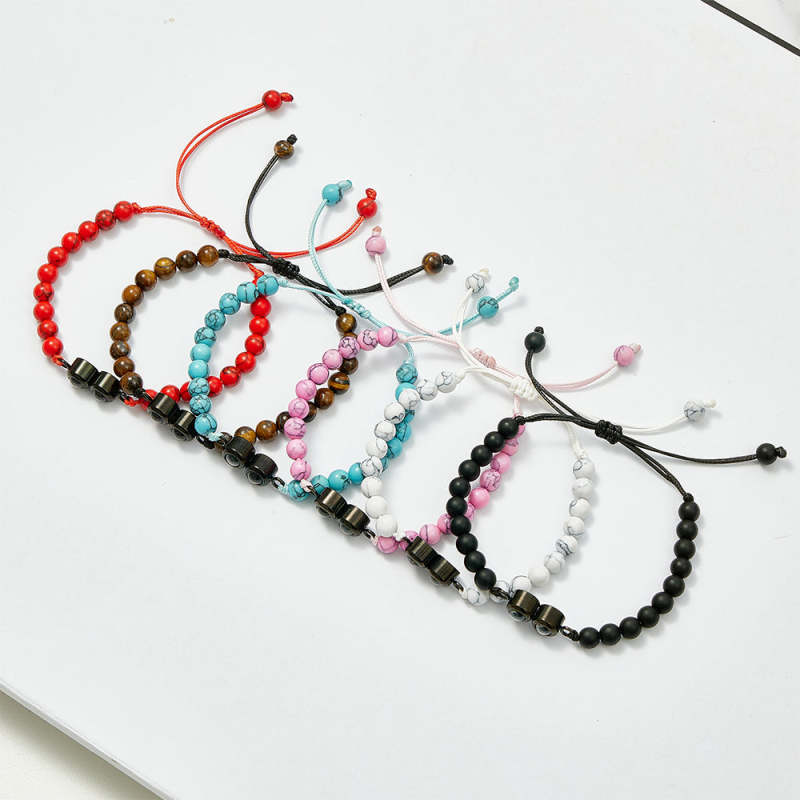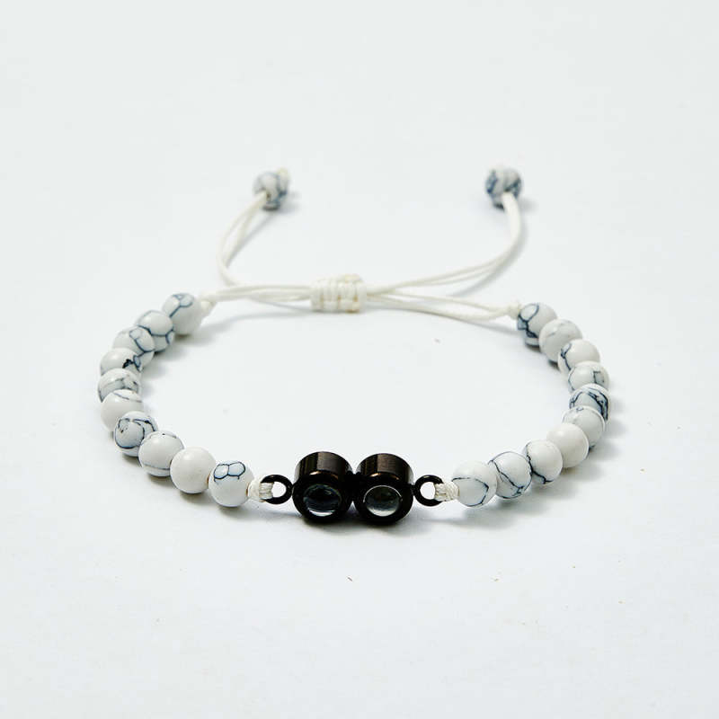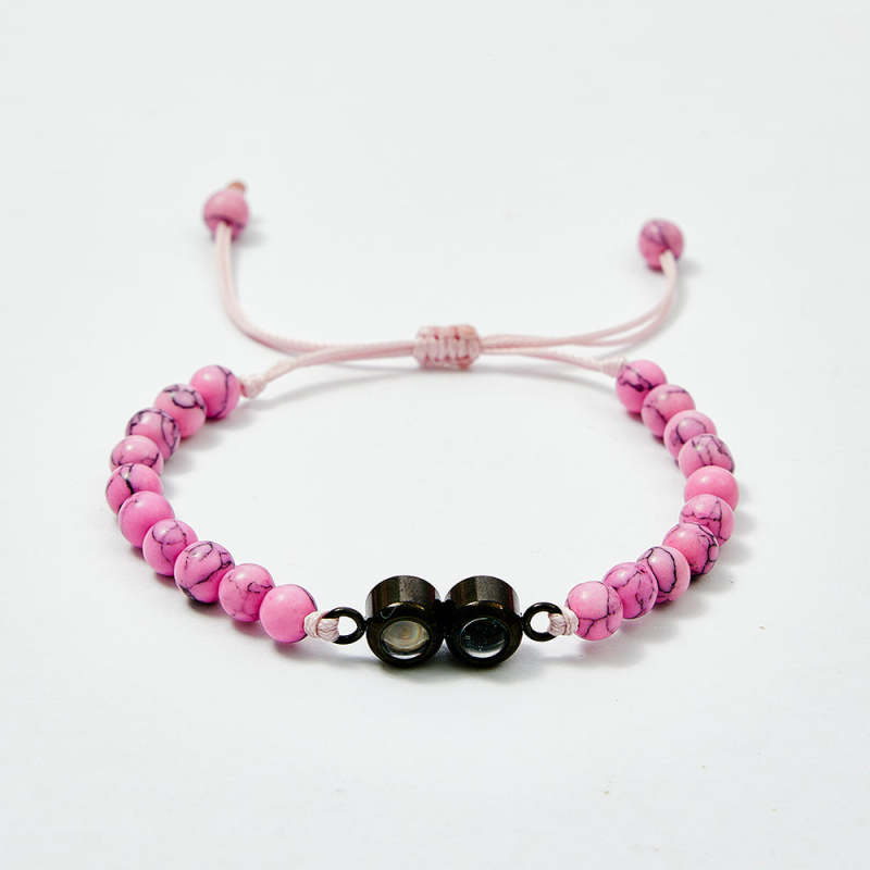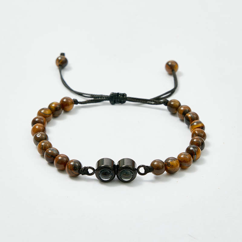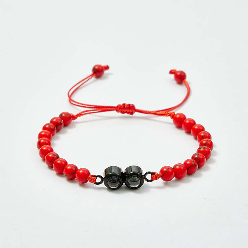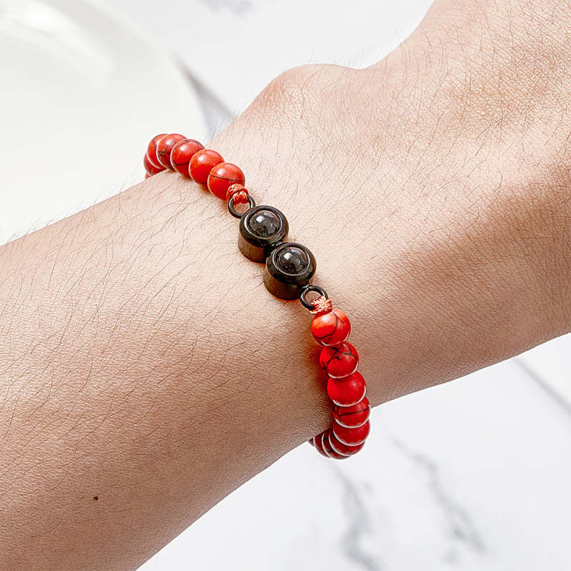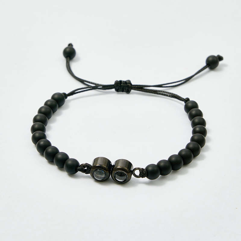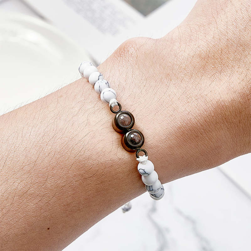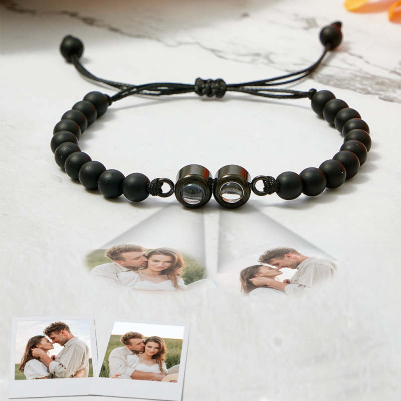 Bracelet Personnalisé À Double Pendentif En Perles De Projection, Bracelet Photo Personnalisé, Cadeau Pour Couple Et Famille