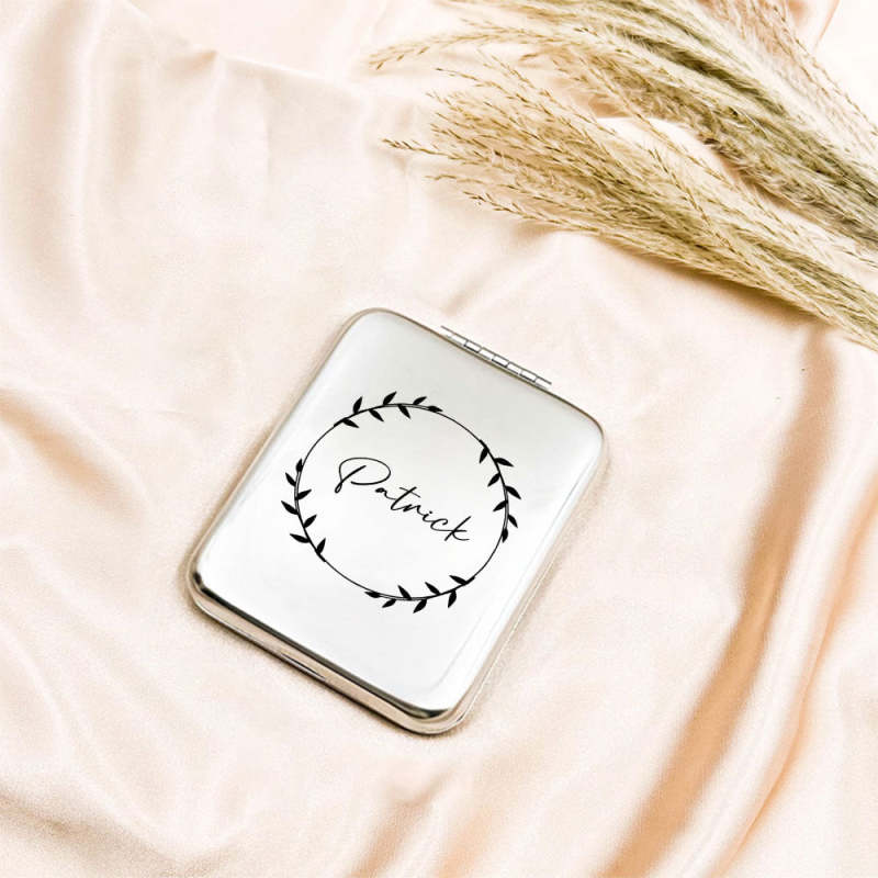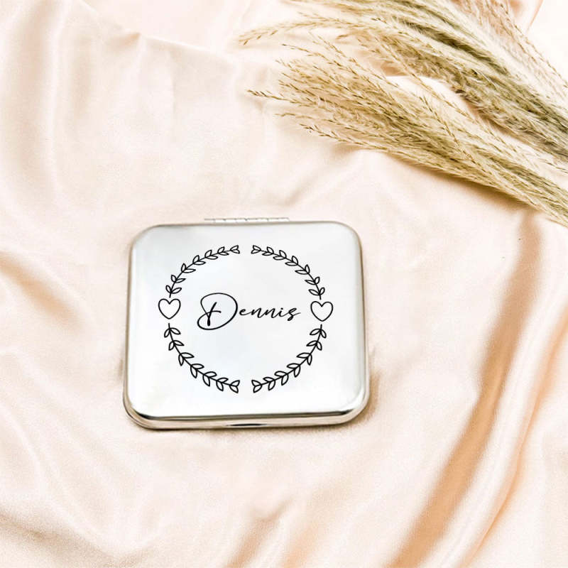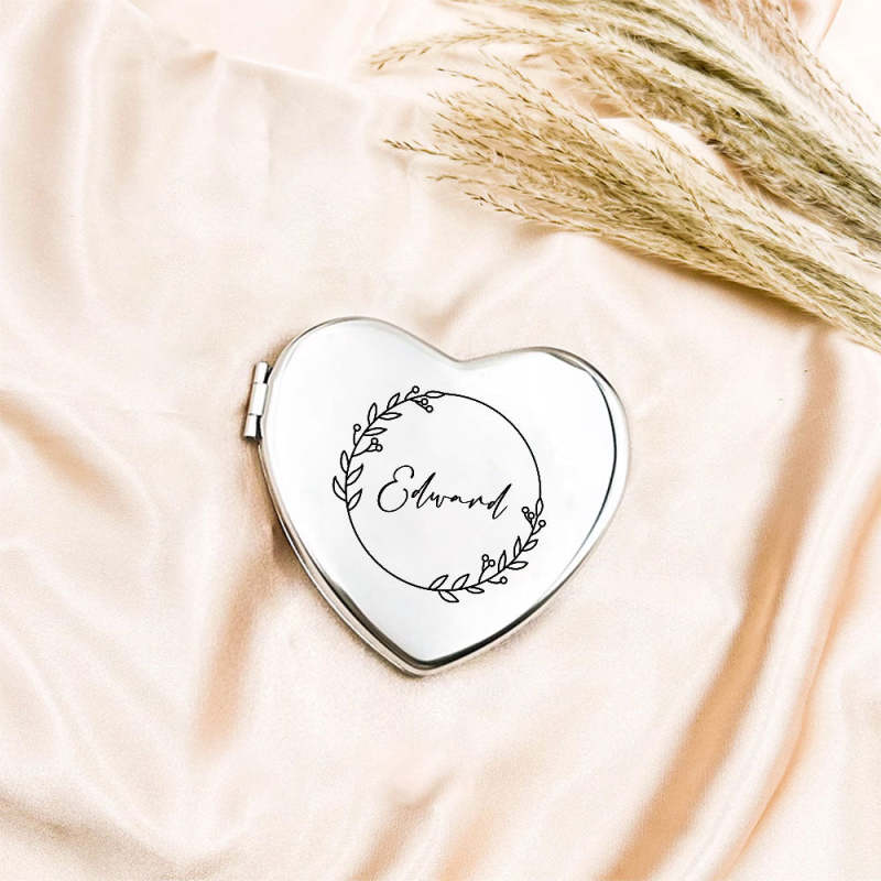 Faveur Personnalisée De Miroir Compact En Argent Gravé, Miroir De Poche De Nom Gravé Personnalisé, Cadeau Pour Elle, Cadeaux De Demoiselle D’honneur, Cadeaux De Fête De Mariage