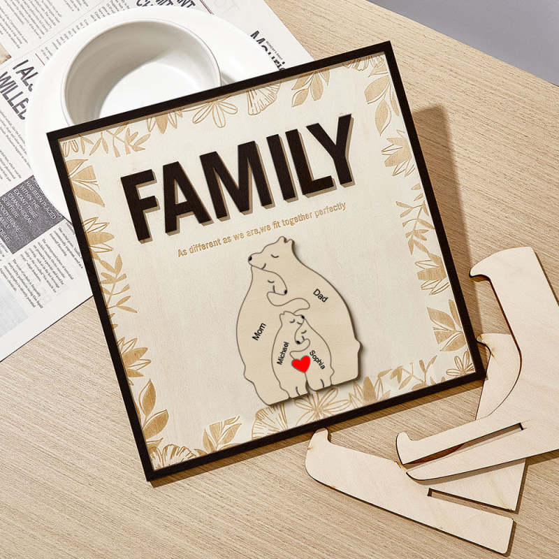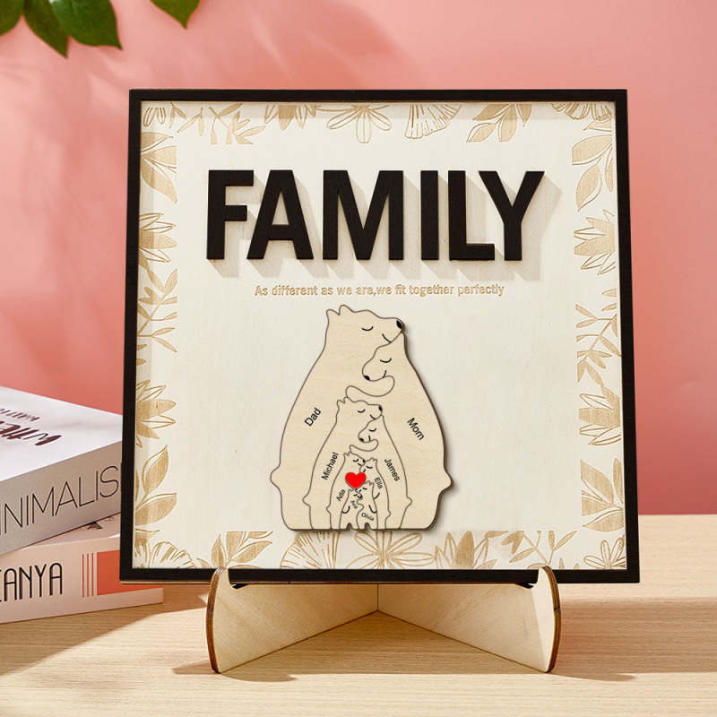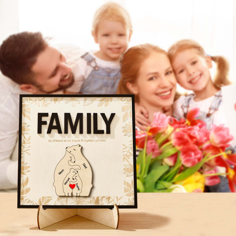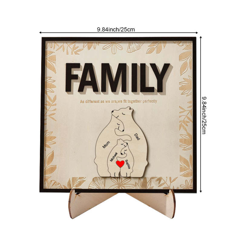 Plaque En Bois Ours Familial Personnalisée, Signe De Nom De Membre De La Famille, Cadeau Pour Maman