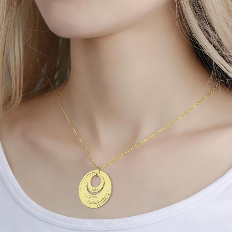 Collier Prénom Gravé à Quatre Disques Personnalisé Plaqué Or 14K