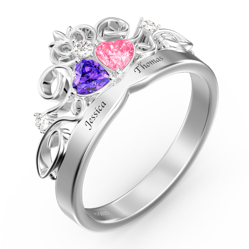 Anneau De Promesse Personnalisé De Princesse De Couronne De Pierre De Naissance De Coeur Avec L'argent De Gravure Pour Elle