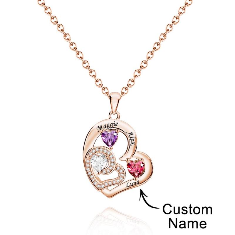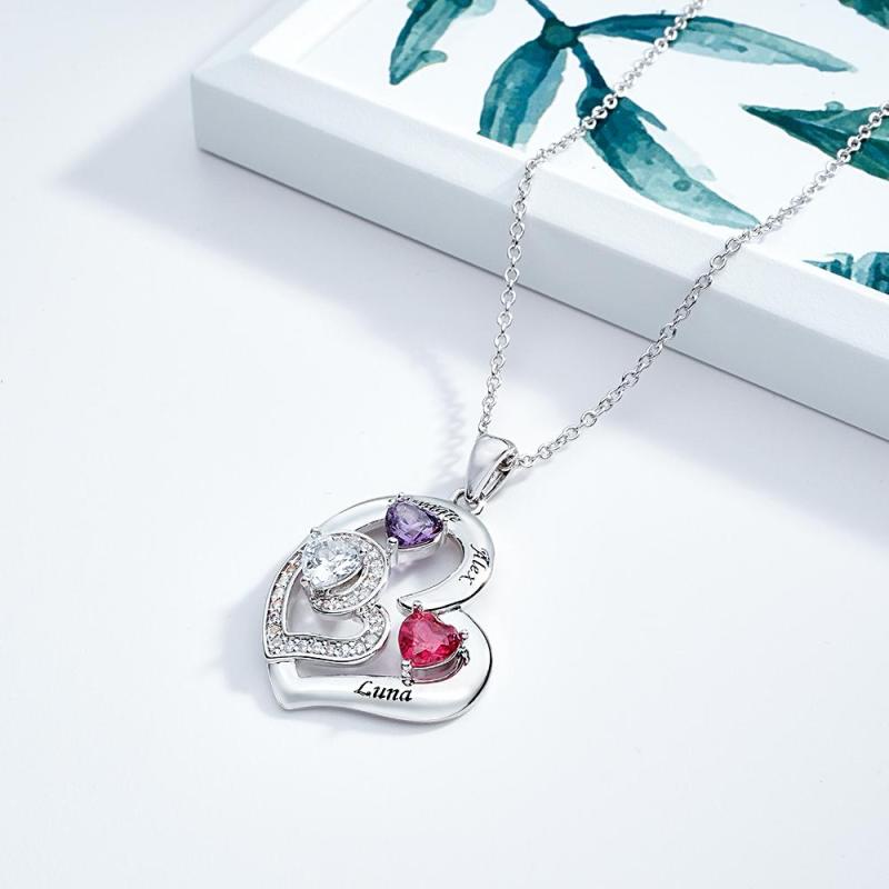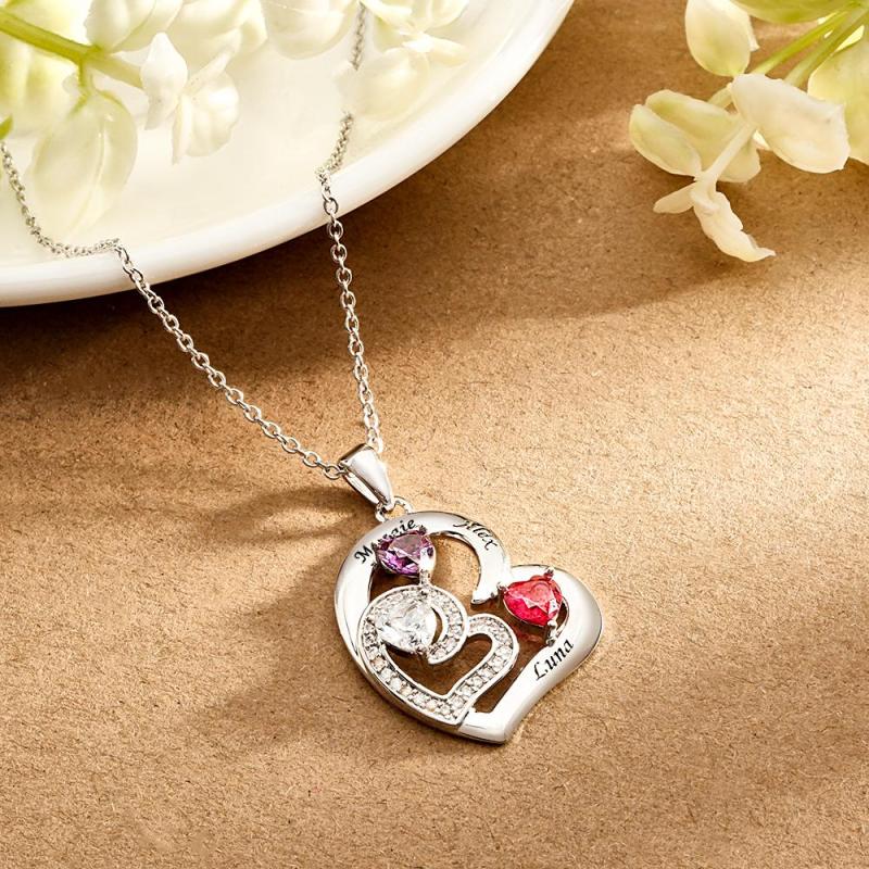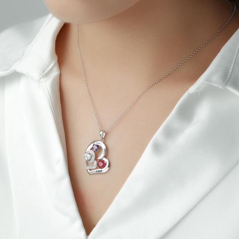 Collier Personnalisé Avec Pierre De Naissance En Forme De Cœur, Charmant Pendentif Gravé, Bijoux Cadeau Pour Elle