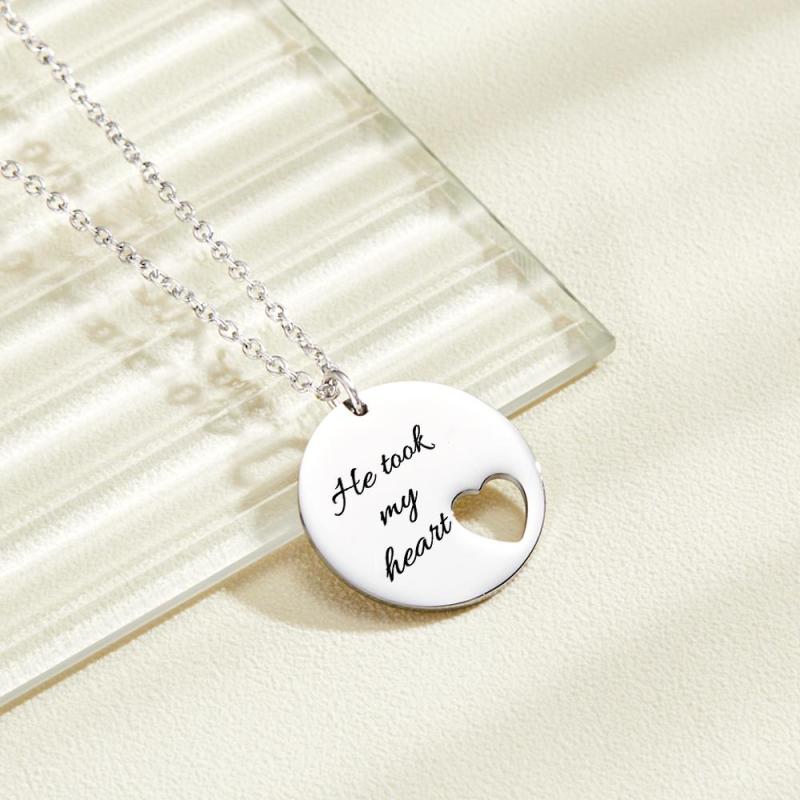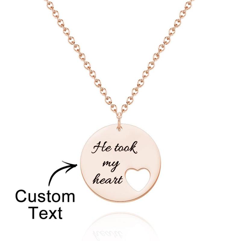 Collier Coupe Coeur Personnalisé Pendentif Cercle Creux Coeur Gravé Personnalisé