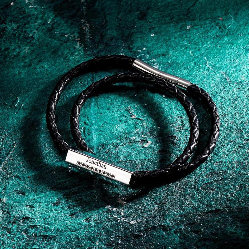Bracelet Wrap en Cuir Personnalisé, Bracelet Gravé Nom Cadeaux pour Petit Ami